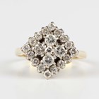 An 18ct gold and diamond square shaped cluster ring, claw set with four principal circular cut diamonds to the centre, London 1980, weight 4g, ring size approx L1/2.