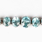 A gold, silver gilt and blue zircon bracelet, 1930s, claw set with a row of nine oval cut blue zircons graduating in size to the centre stone, on a snap clasp, unmarked, weight 6.6g, length 17cm.