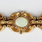 A 9ct gold and opal bracelet, collet set with a row of oval opals within pierced scroll decorated links, on a snap clasp, London 1973, fitted with a safety chain, weight 41.9g, length 20cm.