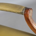 A late 20th century George III style mahogany framed desk chair, upholstered in buttoned green leather, height 100cm, width 64cm.