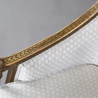 An early 20th century Louis XVI style showframe armchair with carved leaf and foliate decoration, the upholstered seat and back raised on fluted legs, height 100cm, width 69cm, depth 64cm.
