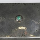 A Liberty & Co 'Tudric' pewter box, model number '082', the hinged lid inset with a turquoise cabochon, the underside bearing 'Tudric 082', width 14cm.