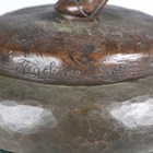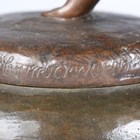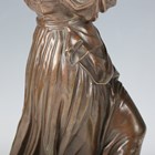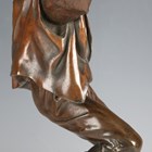 After Jean-Jacques Feuchère - a pair of 19th century French brown patinated cast bronze figures depicting country folk dancing the tarantella, the female figure incised 'Cumberworth', height 37cm, raised on later similarly patinated weighted bases (broken scythe).