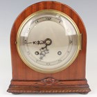 An American mahogany cased drop dial wall clock, the movement striking on a gong, the painted circular dial with Roman hour numerals, the moulded surround above a glazed lenticle, detailed 'Regulator', height 56cm, with pendulum, together with a George V mahogany mantel clock with Empire eight day movement striking on a gong, height 22.5cm, with pendulum.