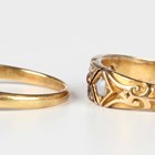 A gold, ruby, opal and diamond ring, mounted with a cushion cut ruby between two circular opals, each in a lozenge shaped setting, with four diamond points at intervals, detailed '18ct', ring size approx M1/2, and a gold, garnet and diamond three stone ring, detailed '18ct', ring size approx J1/2, total weight 4.4g.