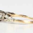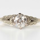 A gold ring, claw set with a cushion cut diamond, detailed '15ct W.Gold 18ct', weight 1.8g, ring size approx K, with a case.