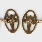 A pair of 9ct gold oval cufflinks, pierced with Masonic square and compasses motifs, London 2004, weight 5.7g, dimensions of each front 1.9cm x 1.2cm.