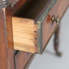 A fine Regency mahogany and brass mounted reading table whatnot in the manner of Gillows, the hinged top above reeded supports and two drawers, height 85cm, width 84cm, depth 34cm.