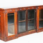 An early 19th century rosewood inverted breakfront side cabinet, the frieze with applied roundel mounts above four glazed doors, on a plinth base, height 95cm, width 183cm, depth 44cm.