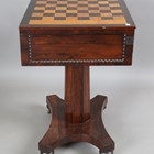 An early Victorian rosewood games table, the top inlaid with a bird's eye maple chessboard, height 75cm, width 60cm, depth 48cm.