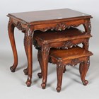 A late 20th century French style carved wooden nest of three occasional table, height 56cm, width 68cm, depth 41cm.