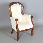 A 20th century Victorian style showframe child's armchair, upholstered in patterned cream damask, height 75cm, width 46cm.