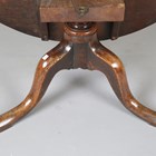A George III oak circular table, on a turned column and tripod cabriole legs, height 43cm, diameter 85cm (cut down).