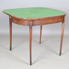 A George IV mahogany fold-over card table, raised on square tapering legs and spade feet, height 72cm, width 91cm, depth 45cm.