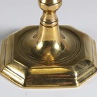 A pair of 18th century brass candlesticks, raised on canted square bases, height 19.5cm.
