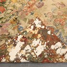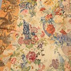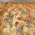 An early 20th century Continental silkwork hanging panel, worked in coloured threads with a central ascending floral centrepiece, flanked by further floral bouquets and two goats, within an apricot flower and bird border, 386cm x 205cm.