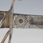 A Victorian 1821 pattern Manchester Volunteer Artillery officer's sword by Hobson & Sons, 1-3-5 Lexington St, London W, with curved single-edged blade, blade length 85.5cm, etched with owner's initials, cannon and 'Manchester V.A', triple-bar hilt and wire-bound fishskin grip.