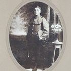 A Second World War period envelope cover of Field Marshal Rommel association, with Feldpost overstamp dated '20.11.43', the reverse printed 'Generalfeldmarschall Rommel', mounted with a print portrait of Rommel, together with a First World War period studio photograph of a soldier and a Machine Gun Corps cap badge.
