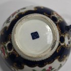 A matched pair of Worcester scale blue ground teacups and saucers, circa 1775, painted with gilt edged panels of exotic birds and insects, underglaze blue fretted square marks to bases, diameter of saucers 13cm, together with a similar teacup, painted with flowers, and a matching plate with wavy rim, diameter 19.5cm (haircrack). Provenance: the property of Michael Godfrey.