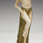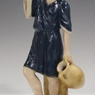 A Royal Dux figure, modelled as a female nude emerging from a waterlily, applied pink triangle to base and impressed numerals, height 15.5cm, a similar nude figure, a Royal Dux male water carrier, height 25cm, and a pair of Royal Doulton Slaters Patent jugs (minor faults and restoration).