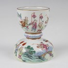 A Chinese famille rose porcelain brushwasher, probably 20th century, the ovoid cup and domed base painted with figural scenes of the Boys' Festival, blue enamelled four-character mark to base, height 8.2cm.
