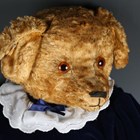 A German wood straw-filled golden plush teddy bear with amber and black eyes, stitched snout and claws and jointed body, height 61cm (damage and repairs).