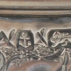 A Victorian silver christening cup with scroll handle and engraved foliate decoration, London 1846 by Edward, John & William Barnard, height 7.9cm, a silver christening tankard with engine turned banding, Birmingham 1926, a silver tankard of girdled cylindrical form, Sheffield 1919 by James Dixon & Sons, and an embossed silver christening tankard, Birmingham 1903, total weight 456g.