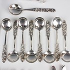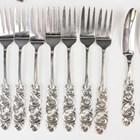 A Norwegian part canteen of .830 silver cutlery by Brødrene Mylius, comprising eight pastry forks, eight small spoons, two butter knives, two dessert spoons, pair of sugar tongs, preserve spoon, two slices and serving spoon, marked '830S', total weight 563g, together with a matching steel bladed cake slice and two knives. Provenance: from the collection of the late Sheila Jeffery, West Sussex collector and geologist.
