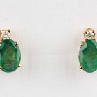 A pair of gold, emerald and diamond earstuds, each claw set with an oval cut emerald above a circular cut diamond, detailed '18K', length 0.9cm, and a pair of gold and demantoid garnet seven stone cluster earstuds with screw posts, detailed '18K Iliana', with screw post and butterfly fittings, detailed '18K', length 0.9cm, total weight 3.8g.