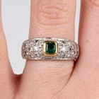 An 18ct white gold, diamond and emerald ring, mounted with the square cut emerald to the centre, otherwise set with circular cut diamonds, Birmingham 2000, weight 8.1g, ring size approx L1/2.