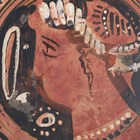 A Greek Apulian black glazed red figure footed plate, 4th century BC, decorated with a central profile portrait of a lady, diameter 16cm. Provenance: Barnard & Moore, Arundel. Note: from the estate of a West Sussex collector.