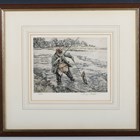 Henry Wilkinson - Fishing and Shooting, a pair of 20th century etchings, both signed and editioned in pencil, each 18.5cm x 22cm, both within stained wood and gilt frames.