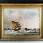 British School - Sailing Vessels in a Stiff Breeze, 20th century oil on canvas, bears initials and date, 50cm x 68cm, within a gilt composition frame.