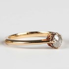 A gold ring, claw set with an old cut diamond, unmarked, weight 1.7g, ring size approx I1/2, a gold and colourless gem set eternity ring, detailed '9ct', weight 2.2g, and another gold and colourless gem eternity ring, unmarked, weight 1.6g.