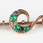 A 9ct gold, opal and emerald oval cluster ring, Birmingham 1977, ring size approx P, a gold crucifix pendant, detailed '9ct', total weight 3.8g, an oval link neckchain and a gold, green and colourless gem set bar brooch in a scroll design, unmarked, weight 2.4g.