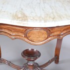 A late 19th century walnut centre table, the shaped white marble top above carved cabriole legs, height 70cm, length 98cm, depth 68cm.