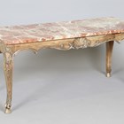 A 20th century Continental carved walnut rectangular coffee table with a rouge marble top, height 43.5cm, length 101cm, depth 41cm.
