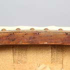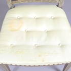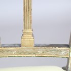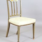A George III Sheraton period green painted side chair, the comb back with a floral painted reserve above a silk padded seat, height 86cm, width 49cm.