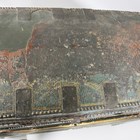 An 18th century lacquered leather green chinoiserie trunk, the domed lid and sides with studded and metal bounded edges, raised on a later made stand, height 83cm, width 98cm, depth 54cm (faults).