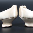 A small group of mainly 19th century lace, including a Brussels veil, 140cm x 59cm, a long rectangular stole, a pair of sleeve panels and a pair of ivory silk wedding shoes.