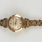 A Jaeger-LeCoultre 9ct gold cased rear winding lady's bracelet wristwatch, the signed silvered dial with gilt baton hour markers and Arabic numerals at 12 and 6, the case back numbered '4850', the gold bracelet with foldover clasp, total length 18cm, total weight 19.4g.