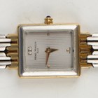 A Michel Herbelin Paris steel and gilt metal rectangular cased lady's bracelet wristwatch, the signed dial mounted with colourless pastes at 12 o'clock, the case back detailed 'Swiss Movt Made in France', the bracelet with foldover clasp, case width 1.8cm.
