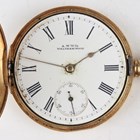 An American Watch Co 18ct gold hunting cased keyless wind gentleman's pocket watch with signed movement, the signed enamelled dial with black Roman hour numerals and subsidiary seconds, gold inner case, all case interiors detailed '18K U.S. Assay', case diameter 4.8cm, total weight 92.3g (missing bow).