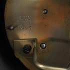A mid to late 19th century French ormolu mounted slate and variegated green marble mantel clock with eight day movement striking hours and half hours on a bell via an outside countwheel, the dial with gilt Roman hour numerals, the drum case with eagle and snake surmount above a pair of flower garlands, scroll supports and breakfront base on toupie feet, height 36.7cm, with pendulum (two gilt hour numerals missing and other minor faults).