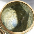 A Jano Clarke studio pottery large jar and cover, covered in a mottled bluish-green and brown glaze, decorated with stems of wheat, impressed mark to side of base, height 42cm.