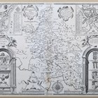 John Speed - 'Buckingham Both Shyre, and Shire, towne describ' (Map of Buckinghamshire), 17th century engraving on laid paper, 38cm x 51cm, within a stained wood frame.