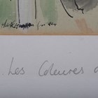 Mark Hutchinson - 'Handling in the Scrum', 20th century watercolour with ink, signed, titled and dated '95, 21cm x 29cm, within a gilt frame, together with two further watercolour and ink illustrations by the same hand, 'Le Rugby feminin avec', and 'Les Coleures des Dames de Toulouse'.