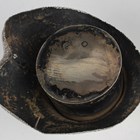 A late Victorian silver horse's hoof snuff box, the hinged lid inscription engraved 'When Riding the Horse to Which this Hoof Belonged with the V.W.H. Hounds near Braydon Pond, George John Whyte-Melville met his death 5th Decr. 1878...', London 1885 by Joseph Braham, weight 308.3g, length 13cm (lacking hoof).
