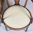 A mid-Victorian walnut showframe nursing chair, upholstered in buttoned green damask, height 70cm, width 48cm, together with two Edwardian salon chairs and a Victorian child's chair.
