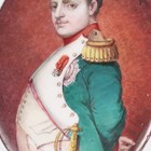 An early 20th century French enamel oval portrait panel depicting a half-length portrait of Napoleon Bonaparte, 12.7cm x 9.5cm.